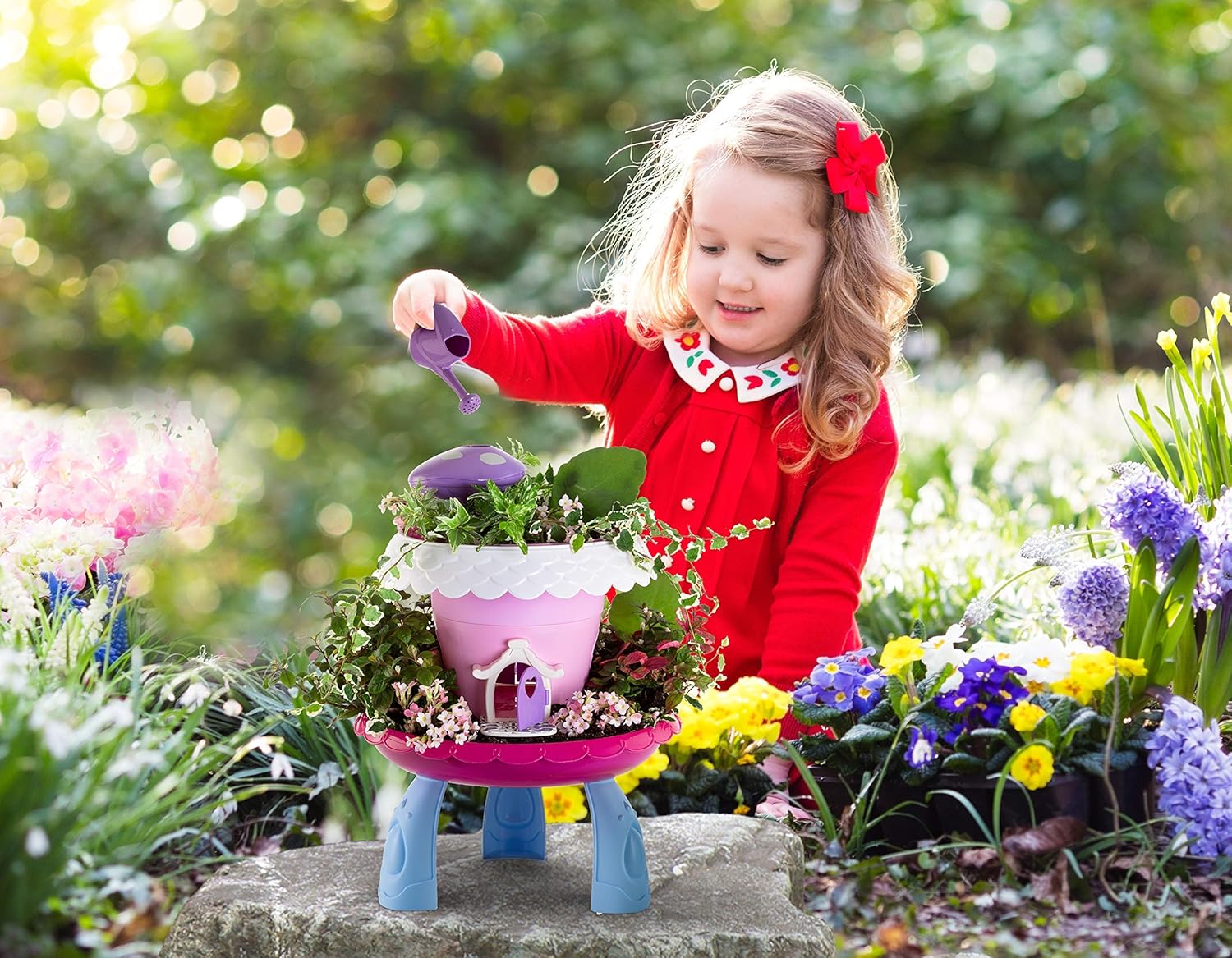 - Kids Gardening tools set includes everything you need a shovel, trowel, garden toy rake, water can this toddler gardening set features fairy garden accessories: 2 pink flowerpot, packet of 5 magical seed mix, 2 soils , toadstool reusable cottage garden toy for continuous growing fun.
