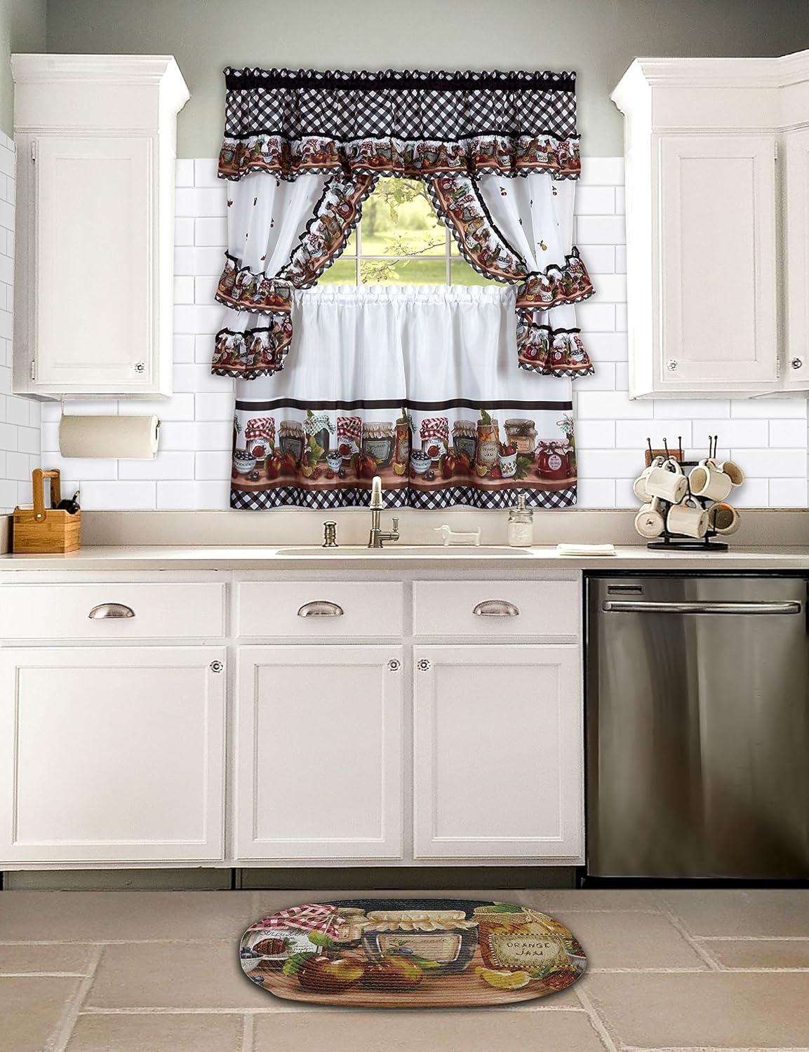 naturally home Mason Jars Kitchen Curtain Cottage Set, Tiers and Ruffled Swag, 36-Inch Long