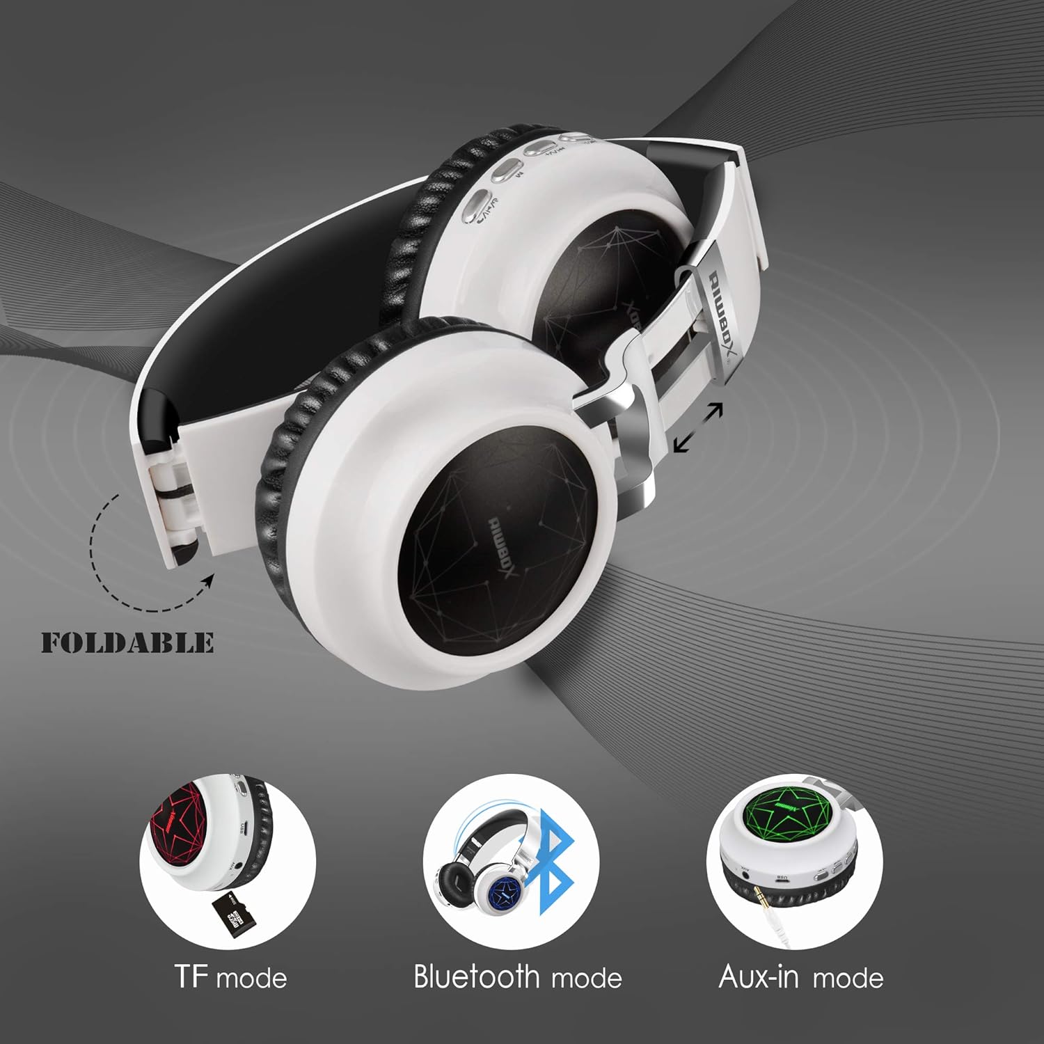 - Riwbox WT-8S is a foldable Bluetooth LED headphone with star scintillation technology elements. Stars of seven colors, red/blue/green and so on, the lights change along with the rhythm of music on both sides of the ear, let you have a unique feeling.