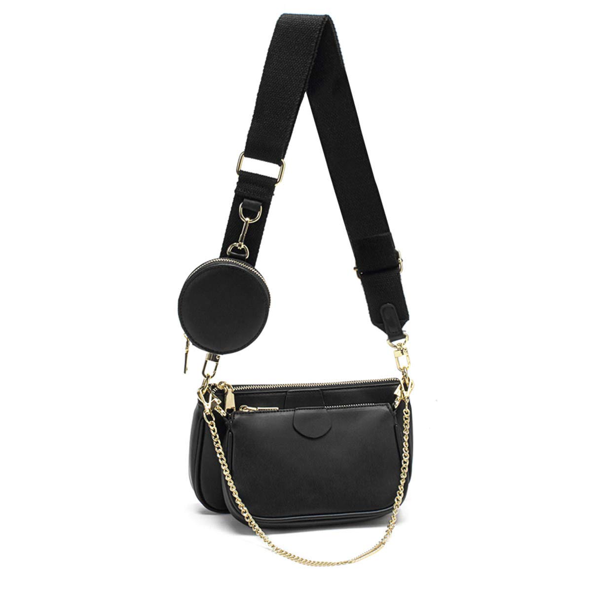 - PERFECT FOR DIFFERENT OCCASION: You get a large purse, small purse and coin purse,one golden chain strap and one adjustable crossbody strap.The three-piece dynamic design can either split a multi accessoires bag into a wallet, handbag and crossbody bag for separate use, or combine three bags together to form a unique multipurpose accessoires bag , with enough space to pack your small essentials like phone, cards, wallet, sunglasses, cosmetics and so on, practical and beautiful.